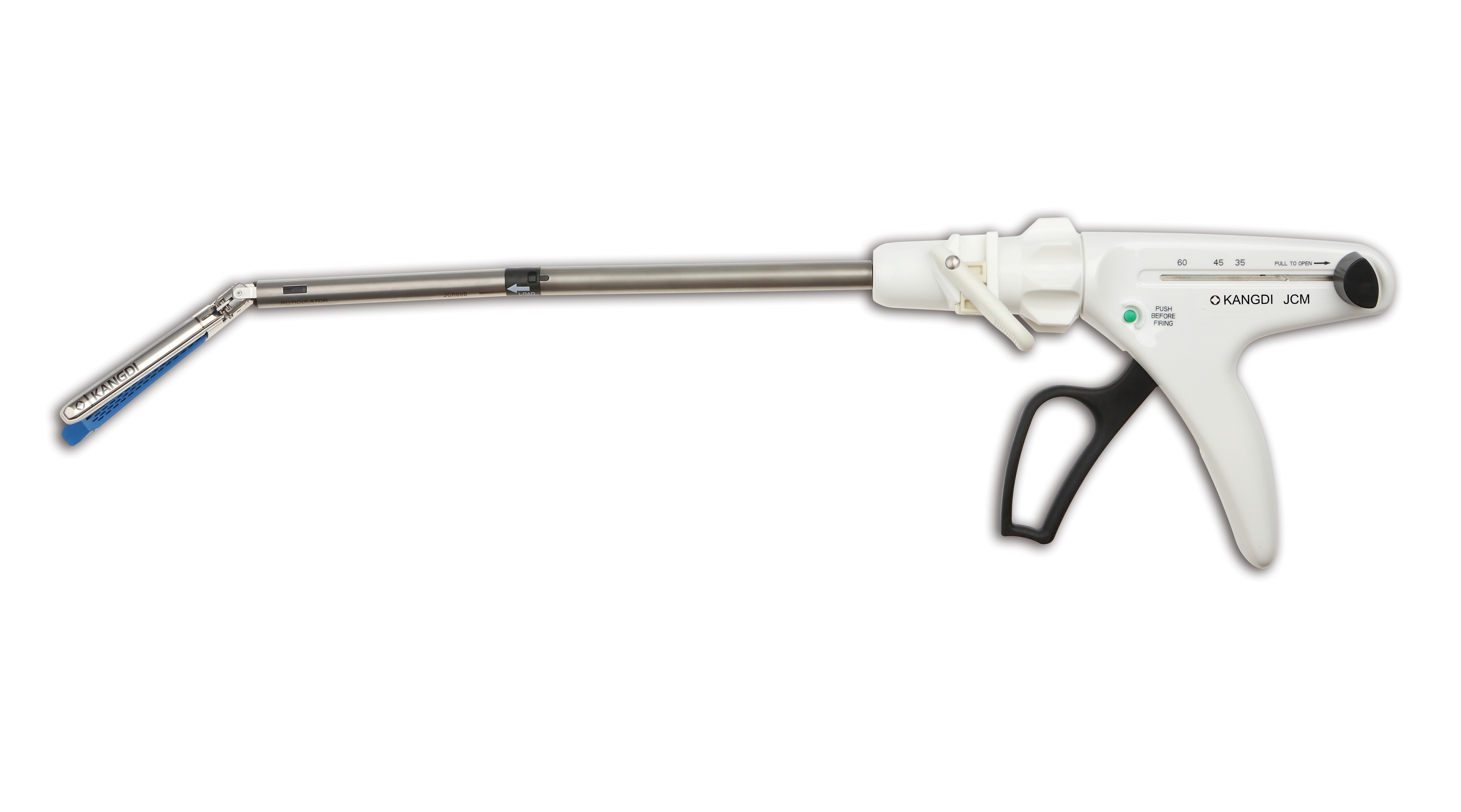 一次性使用腔鏡下切割吻合器及組件具有左右各三排交錯(cuò)排列的鈦釘,能夠同時(shí)縫合和切割組織。
