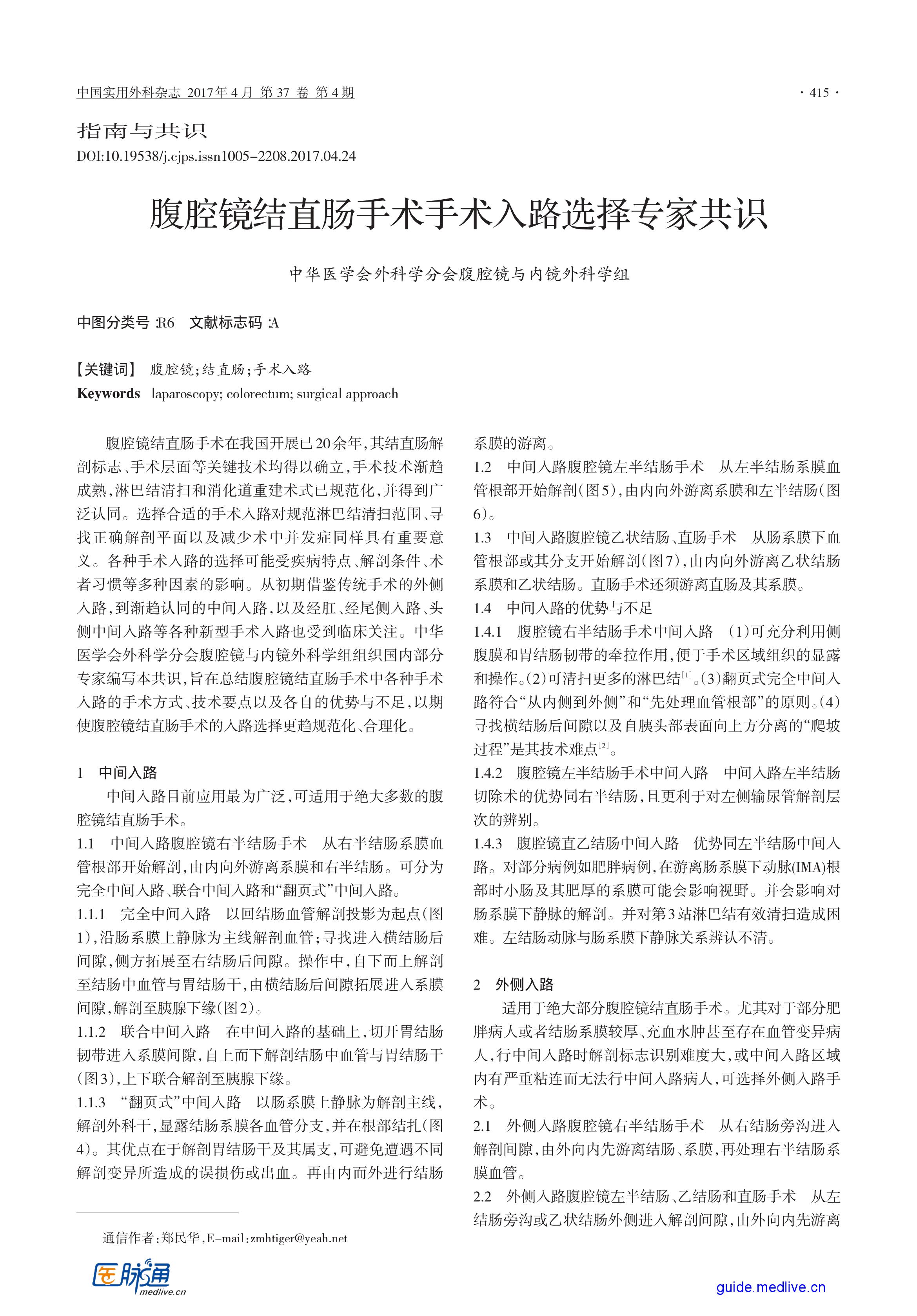 腹腔鏡結(jié)直腸手術(shù)手術(shù)入路選擇專家共識(shí)