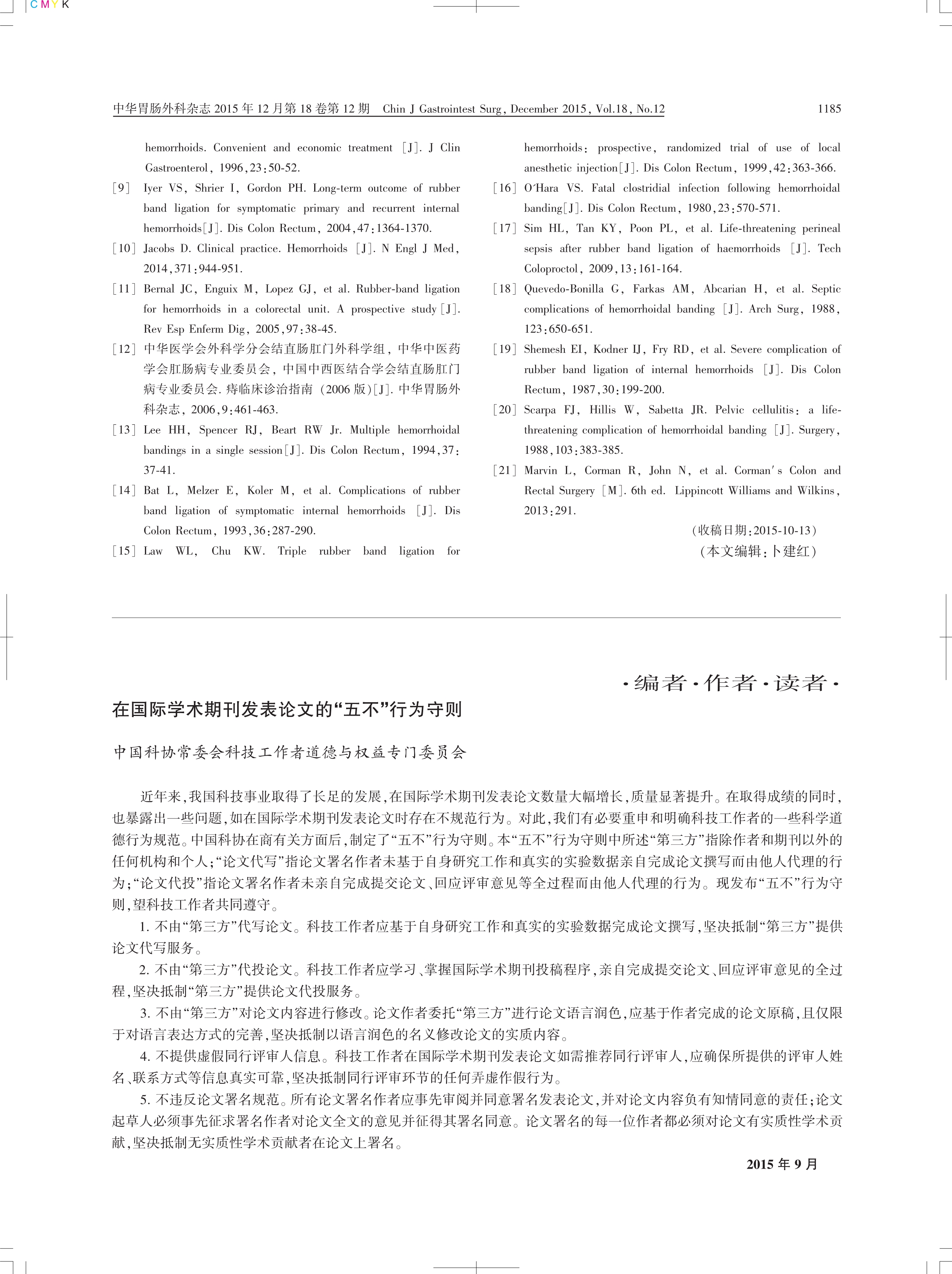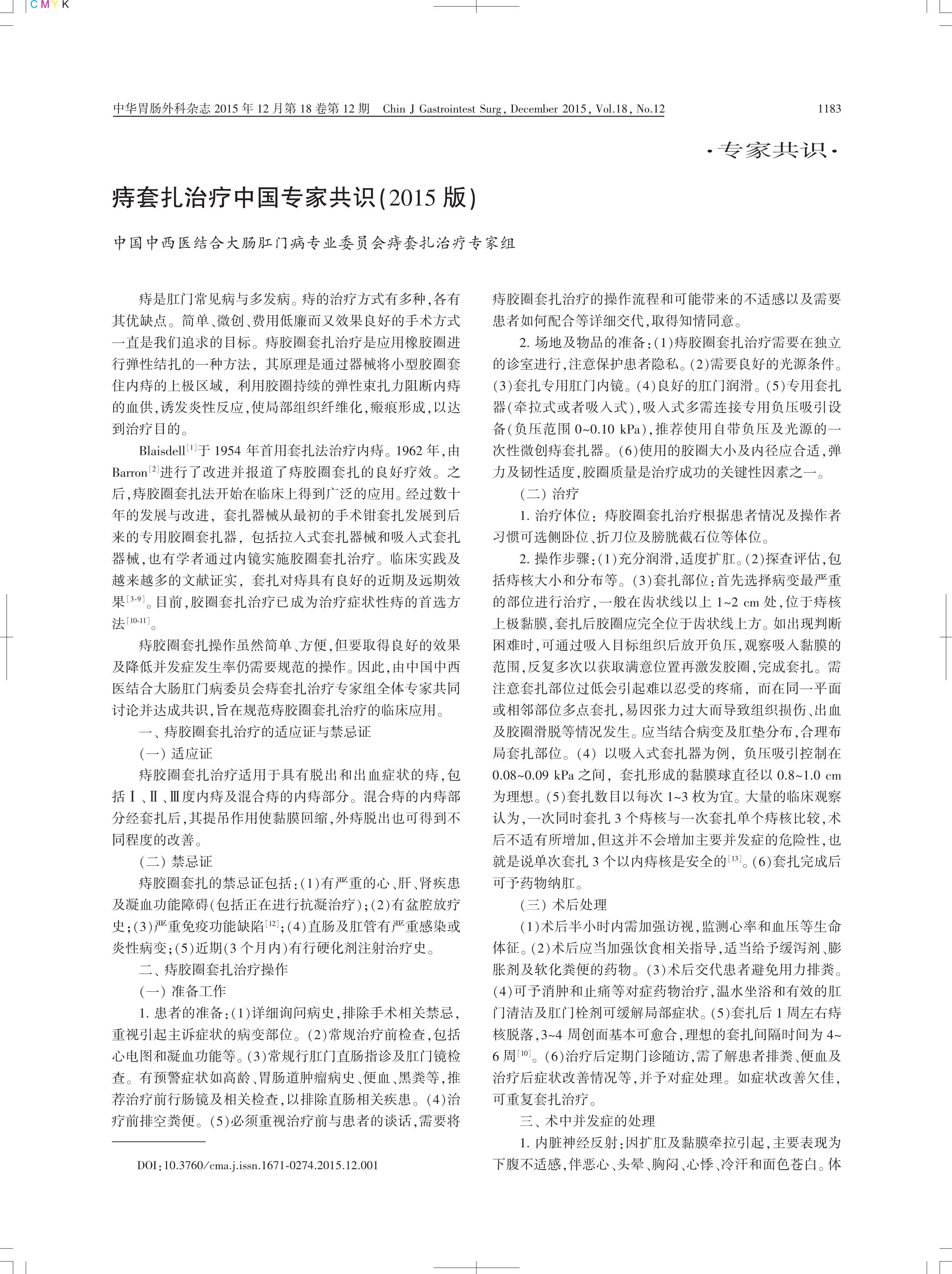 痔套扎治療中國(guó)專家共識(shí)(2015版)