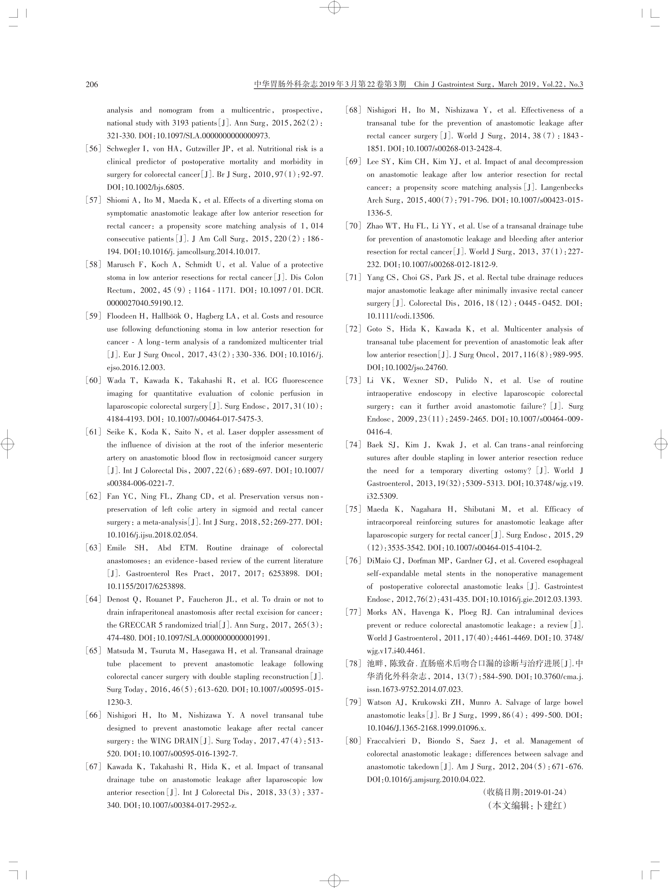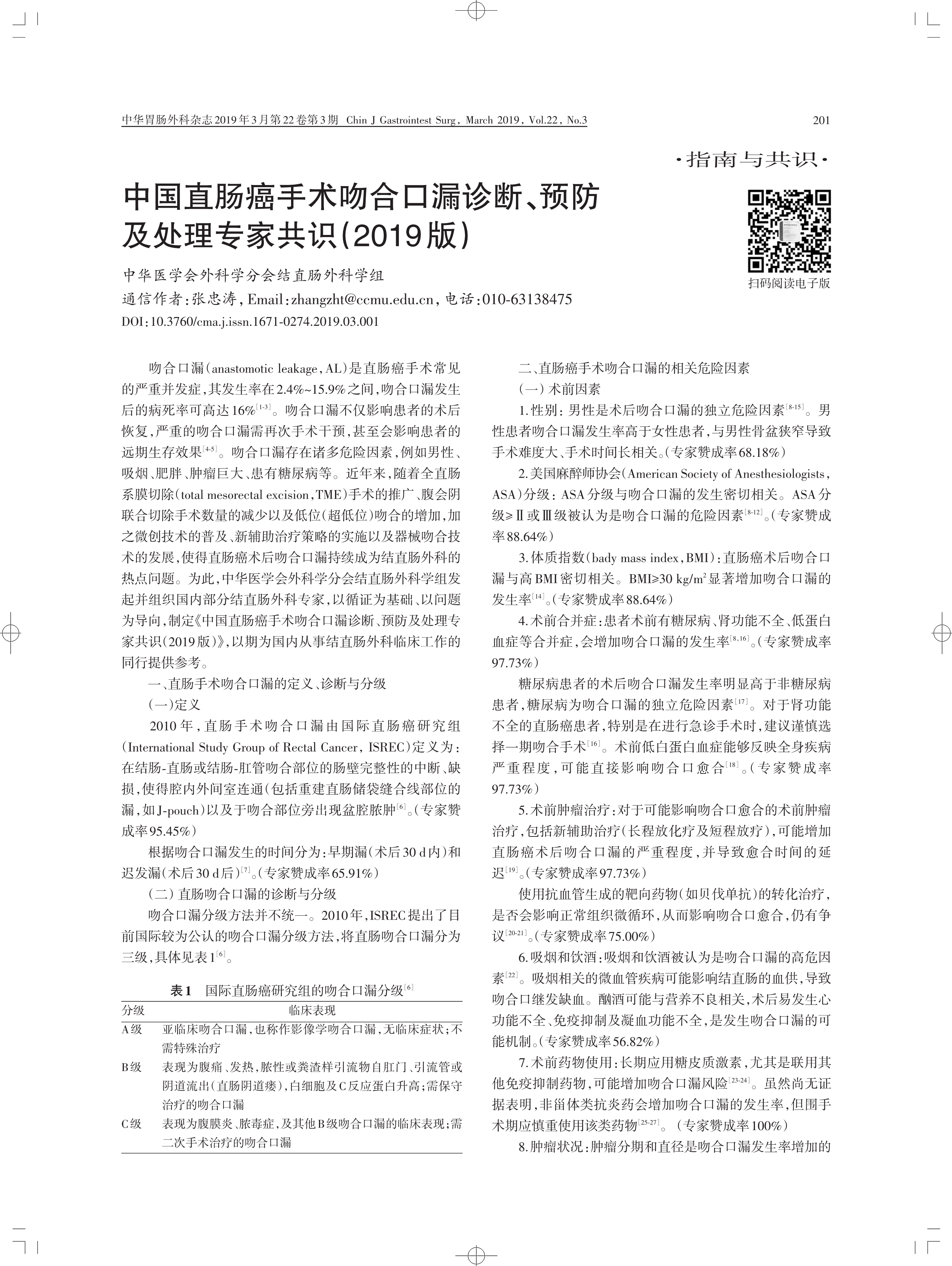 中國(guó)直腸癌手術(shù)吻合口漏診斷、預(yù)防 及處理專家共識(shí)(2019 版)