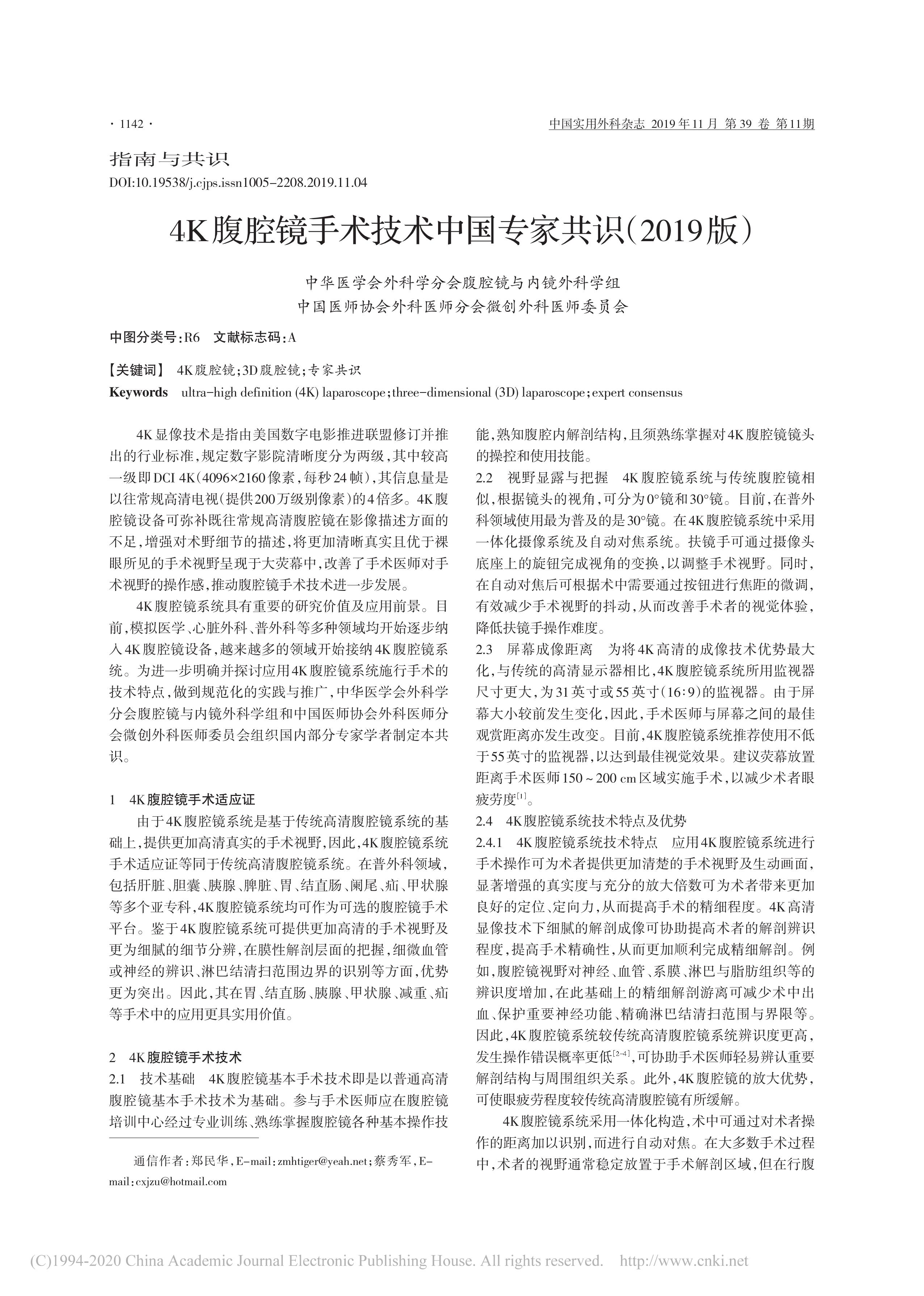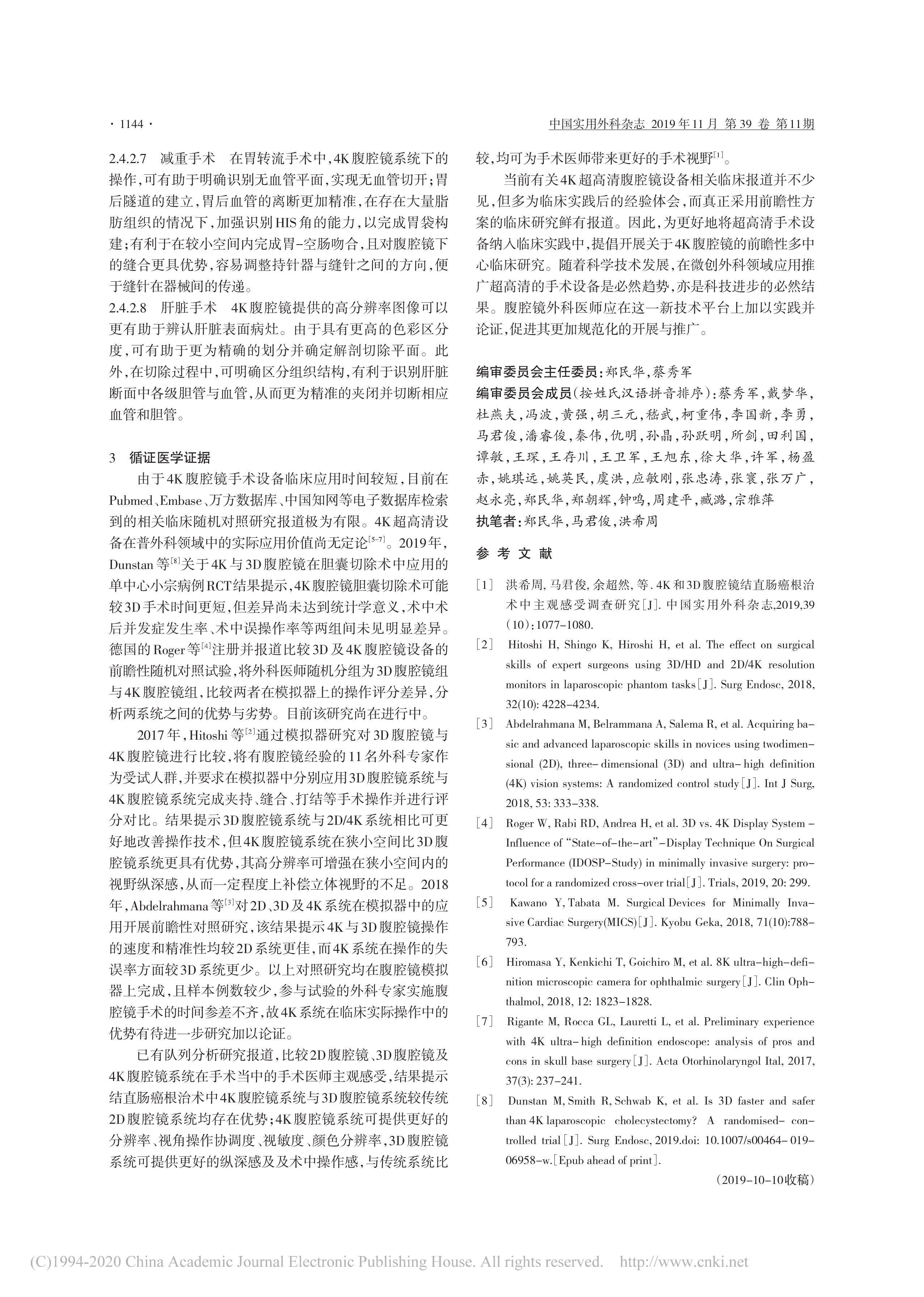 4K 腹腔鏡手術技術中國專家共識(2019 版)