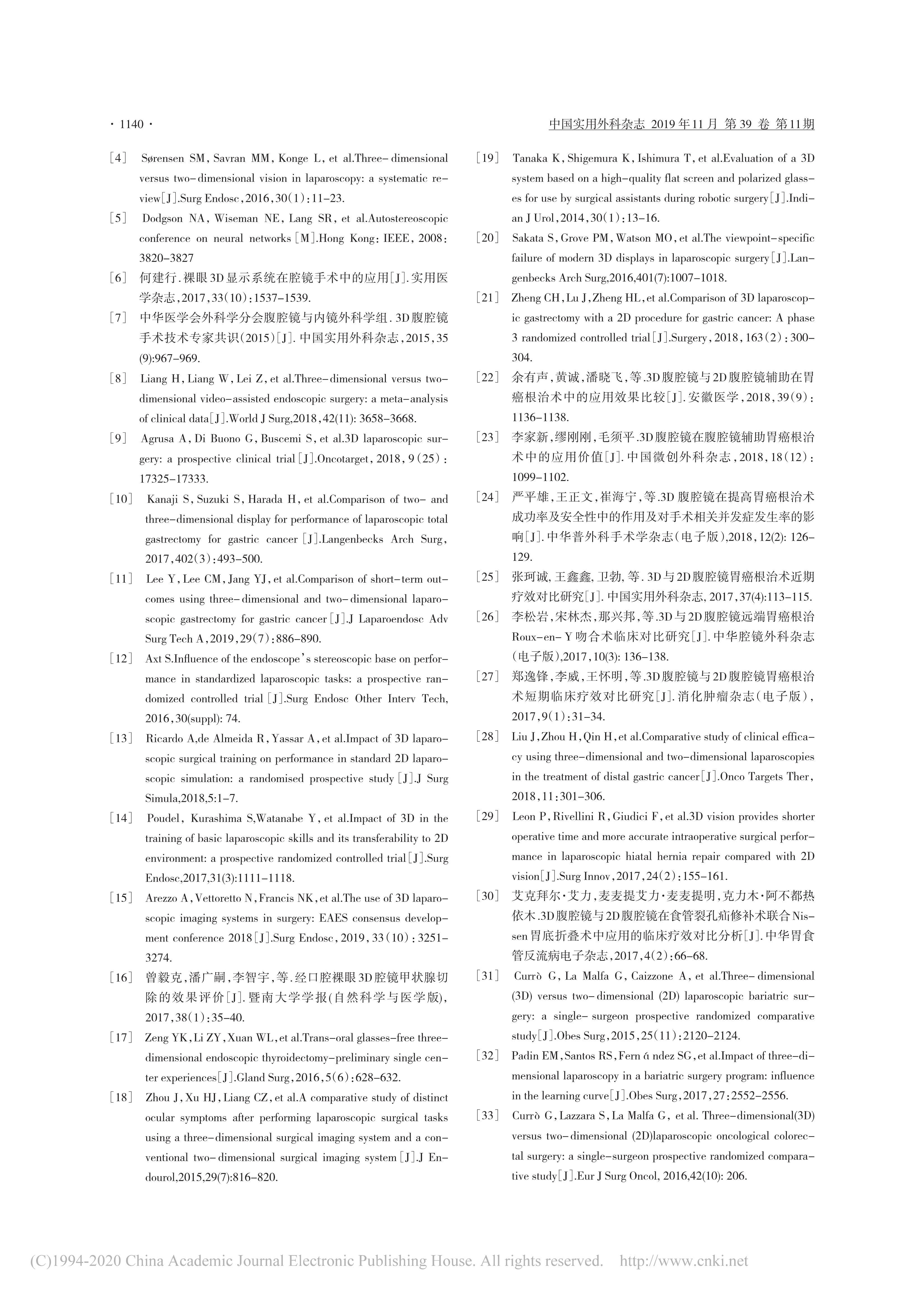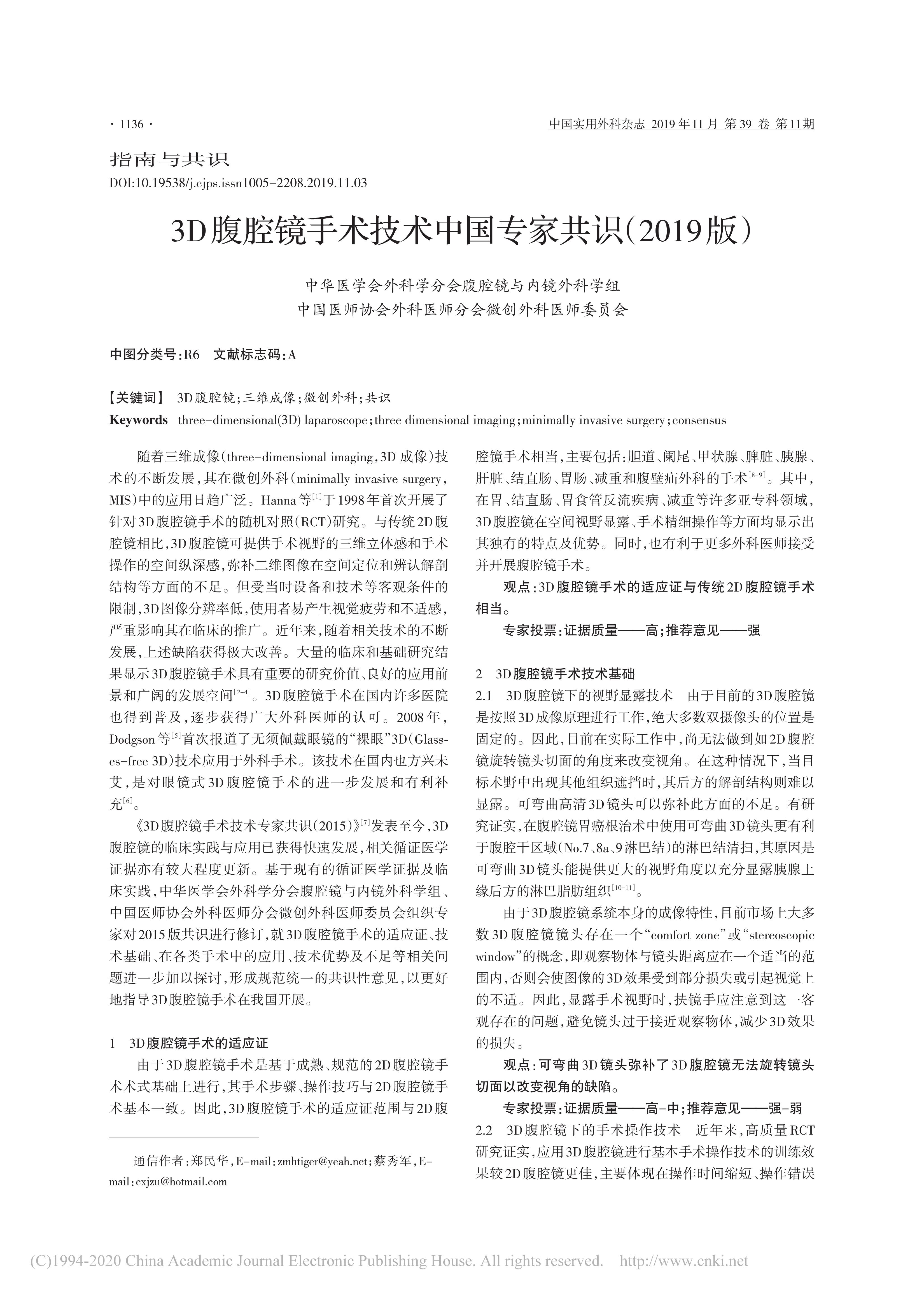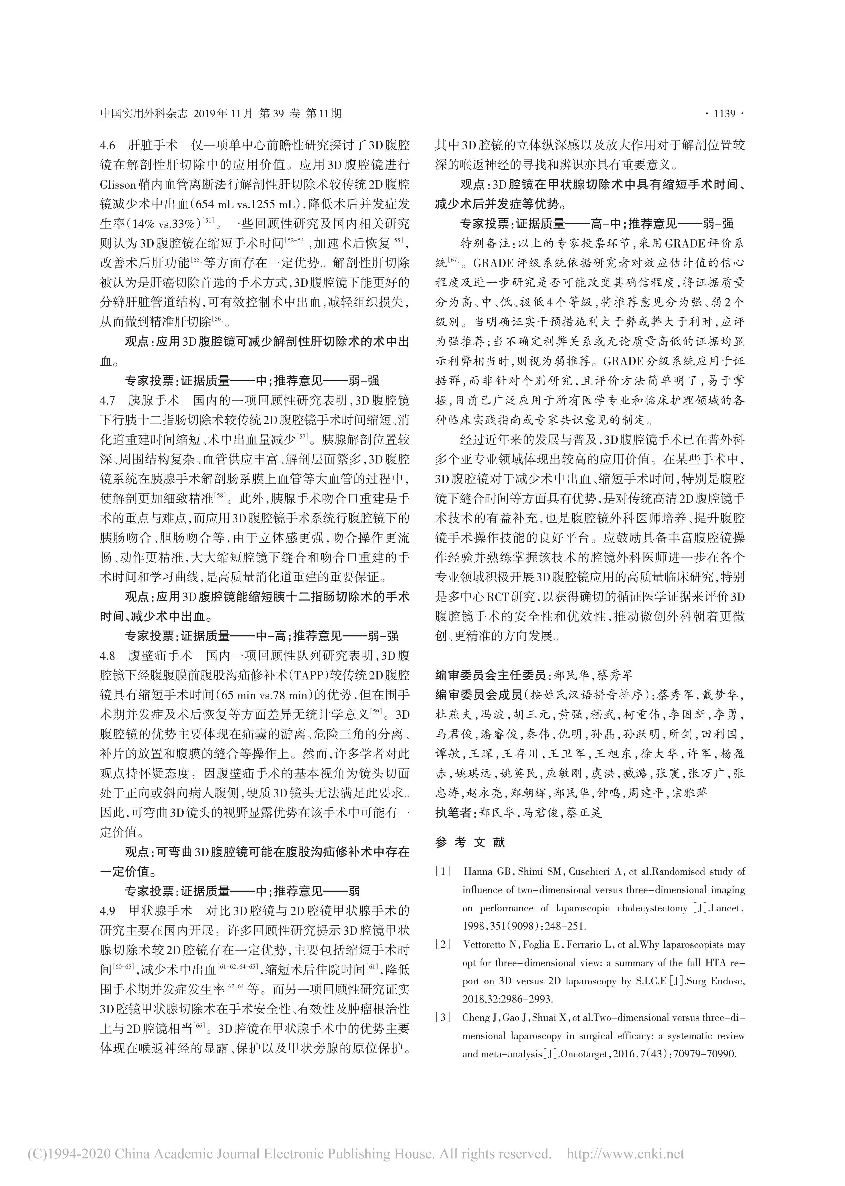 3D腹腔鏡手術(shù)技術(shù)中國(guó)專家共識(shí)(2019版)