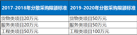(三)縣級分散采購限額標準:貨物、工程和服務(wù)類項目,單項或者批量采購預(yù)算金額從10萬上調(diào)至20萬元。